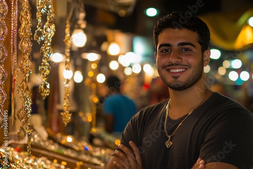 Sparkling jewelry glimmers under lantern light, stalls packed with eager shoppers. The vibrant colors of Eid fill every corner of the market