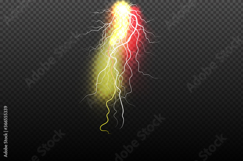 Sparkling lightning on black background Magic and bright lighting effects.Vector illustration.