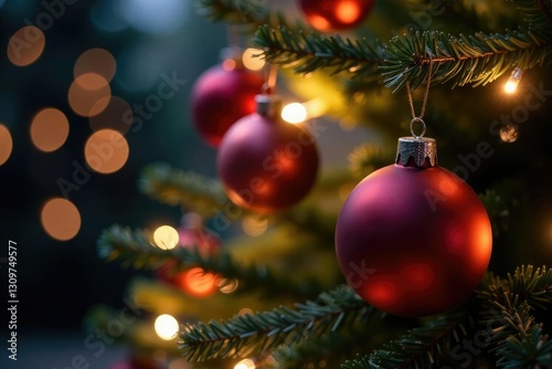 Sparkling lights adorn Christmas tree twinkling ornaments glowing bokeh, blur, festive
