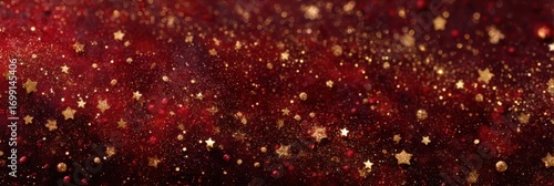 Sparkling red and gold festive background filled with stars and ornaments for holiday celebrations and decorations