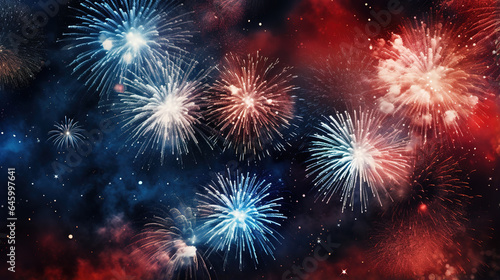 Sparkling red blue white celebration fireworks