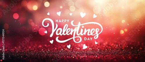Sparkling Red Glitter Valentines Day Background with Romantic Typography