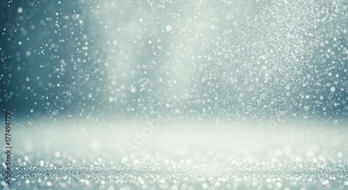 Sparkling silver and blue glitter background with shimmering particles and bokeh effect.