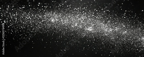Sparkling silver glitter on black background creating dazzling abstract pattern
