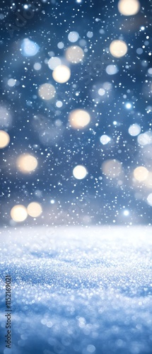 Sparkling snow and bokeh lights create a magical winter wonderland atmosphere.