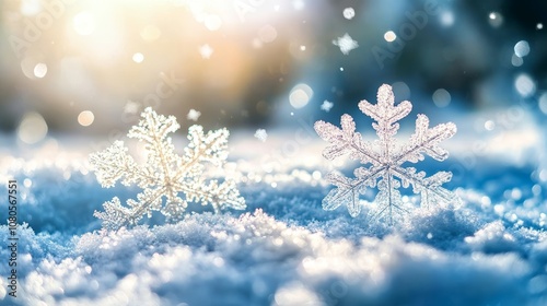 Sparkling Snowflakes in Cold Winter Air with Glittering Background