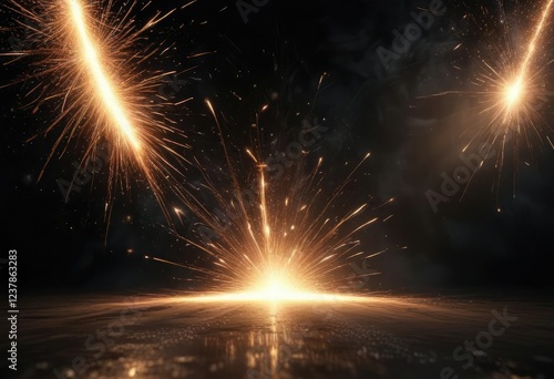 Sparkling sparks shimmering above a dark surface, , glittering effect