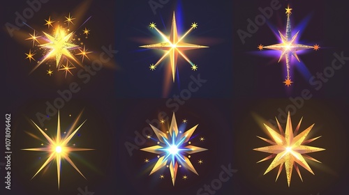 Sparkling Star Icons - a festive and cheerful collection. The set of glittering star icons adds a delightful touch to holiday decorations.