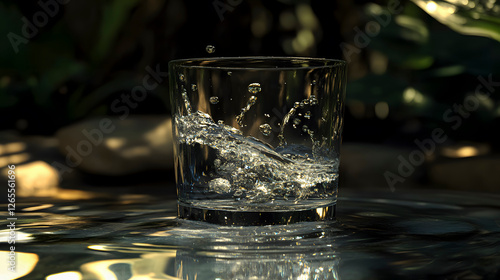 Sparkling Water Splash in a Glass Surrounded by Nature