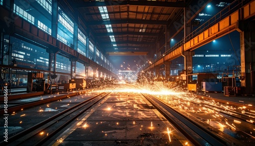 Sparks Flying in Industrial Warehouse During Metalworking Process