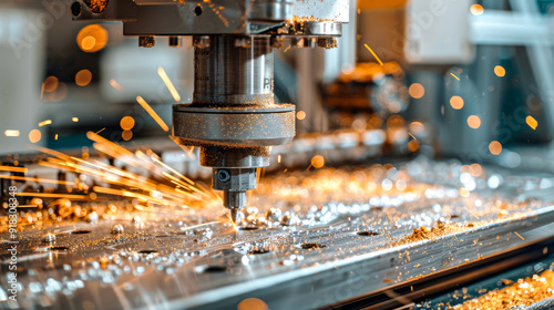 Sparks illuminate the workshop as a powerful laser cuts through metal with precision, showcasing advanced industrial technology in action