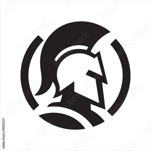 spartan logo, simple knight, black and white