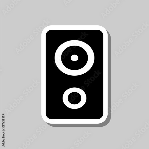 Speaker musical simple icon. Flat design. Sticker with shadow on gray background
