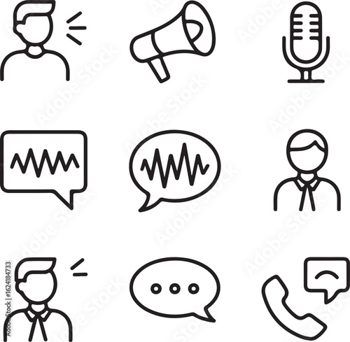 Speaking and Communication Icon Set – Clean Editable Stroke Vector Pack