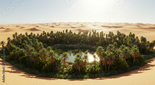 Spectacular Oasis in the Vast Desert Landscape with Palm Trees and Water