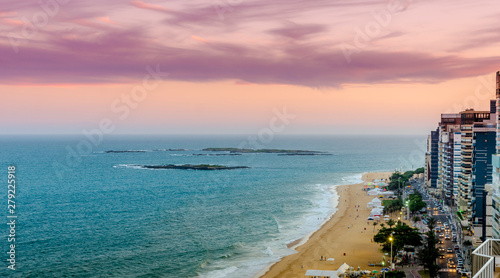 Spectacular sunset over Costa Beach in Vila Velha , ES , Brazil.