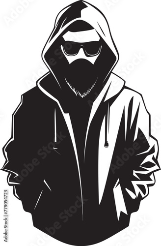 Spectral Strategist Stylish Man in Hood and Glasses Vector Emblem Stealthy Spectacles Urban Figure with Glasses Vector Logo Design