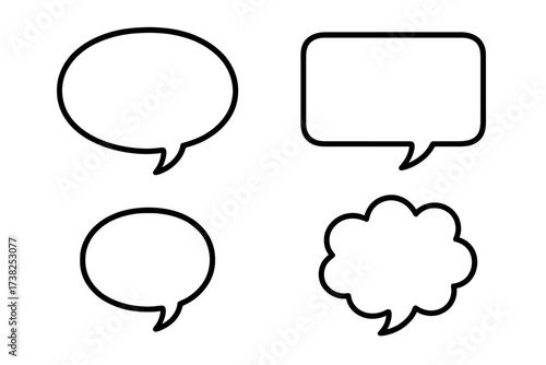 Speech bubble and thought bubble outline icon set. Vector cartoon illustration for communication, chat, dialogue. Blank comic text boxes for web design, apps, social media.