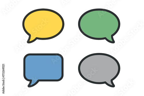 Speech bubble icon set. Colorful flat design chat box collection. Vector graphic elements for communication, message, comment, dialogue, forum, discussion, social media, feedback.