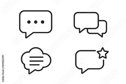 Speech bubble icon set for chat messaging. Minimalist line design with text box, cloud, star shapes. Communication, social media, app UI. Vector comment & dialogue signs.