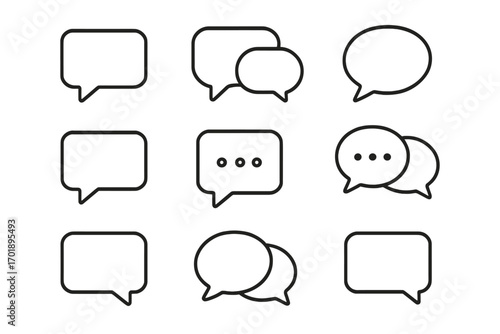 Speech bubble line icon set. Chat bubble, message, comment symbols. Simple outline pictogram collection for web design, apps. Communication, dialogue, social media vector.