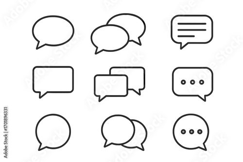 Speech bubble line icon set. Chat, message, and communication symbols. Minimalist outline pictogram collection for web, UI/UX, apps, social media. Vector illustration.