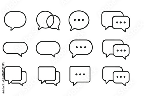 Speech bubble line icon set. Chat, message, comment, and dialogue symbols. Communication concept for web and graphic design. Minimalist linear pictogram pack for apps, social media.