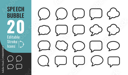 Speech Bubble Line Icons Set – Editable Thin Outline for Chat, Message, Communication & UI Design