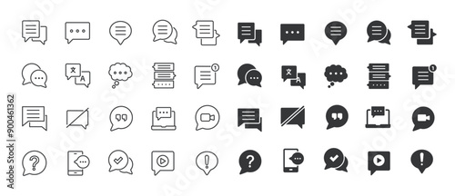 Speech bubble thin line and glyph solid icons collection. Editable stroke. Containing chat, dialogue, communication, talking, information icons.