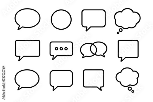 Speech bubble thought bubble outline icon set. Chat box, talk balloon, message bubble for communication, dialogue, comic, social media. Vector of blank empty text frame template.