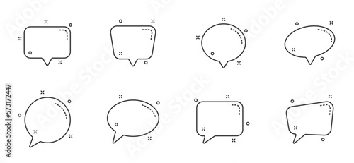 speech bubbles outline vector illustrations with memphis elements. speech bubbles line icons for web, ui and social media design isolated on white background