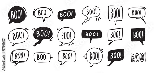 Speech bubbles with text Boo. Vector hand drawn doodle illustration
