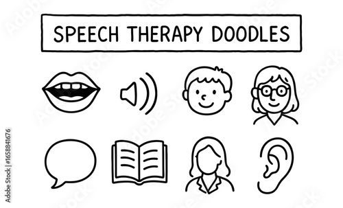 Speech therapy doodles: fun cartoon icons for learning and communication