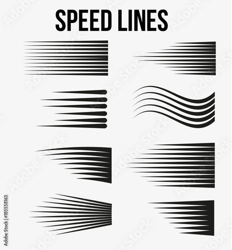Speed lines black for Manga and Comic vector elements on white background. Vector Illustration