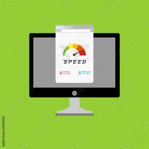 speedometer on a laptop for web banner, business presentation, advertising material. vector illustration