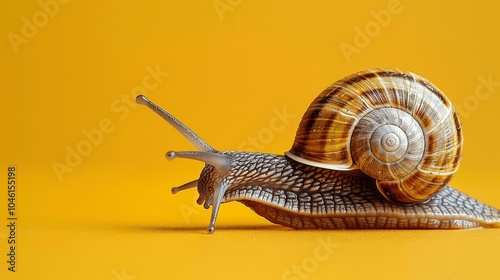 Speedy Snail on Wheels in Yellow Background - Concept of Speed and Success, Fast Delivery, Efficient Transportation, Time-Saving Movement, Reptile Courier