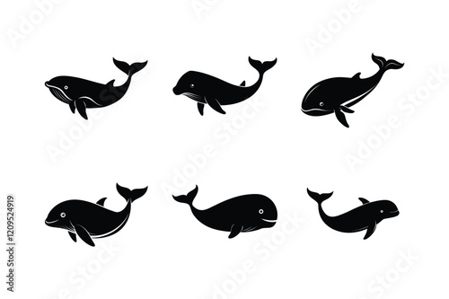 Sperm Whale (Physeter macrocephalus) mammal animal, labeled silhouette vector art illustration.
