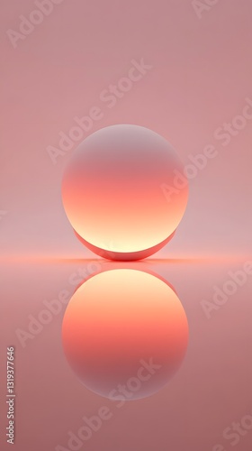 Sphere of Light and Reflection: A luminescent sphere floats above a reflective surface, showcasing a gradient of warm, sunset-like colors that evoke feelings of tranquility and cosmic beauty.