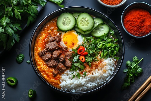Spicy Beef Curry Rice Bowl for Overhead Shot.