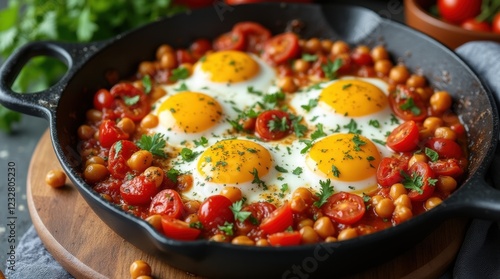 Spicy, herb-infused shakshuka, a flavorful Middle Eastern dish