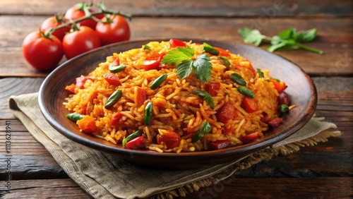 Spicy Indian tomato rice dish served in a plate, Indian, cuisine, food, traditional, vegetarian, spicy, aromatic, flavorful, cooking