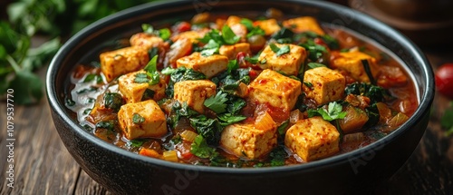 Spicy kimchi stew with tofu and vegetables, vibrant colors, rich textures, inviting warmth, culinary delight, comforting dish