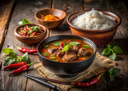 Spicy Pork Rib Tamarind Soup, Thai Herbs, Rice - Urban Exploration Food Photography