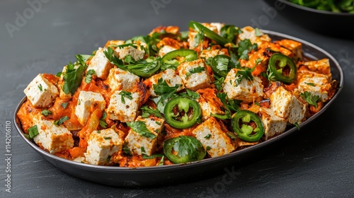 Spicy Tofu Nachos Delight Vegan Kitchen Food Photography Indoor Close-Up Plant-Powered Flavor
