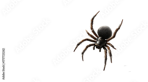 Spider hanging from large cobweb, spooky template design, isolated on transparent background