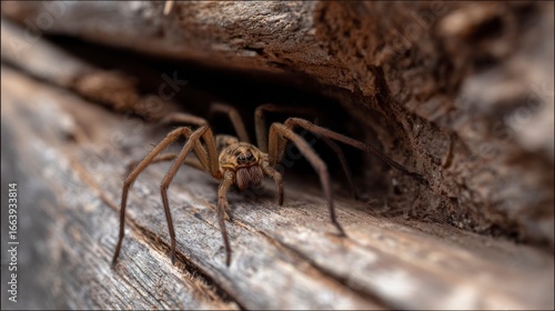Spider on aged wooden log