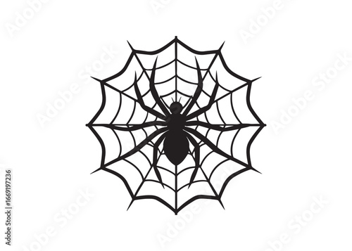 Spider on Web Silhouette Vector Illustration Isolated on White Background.