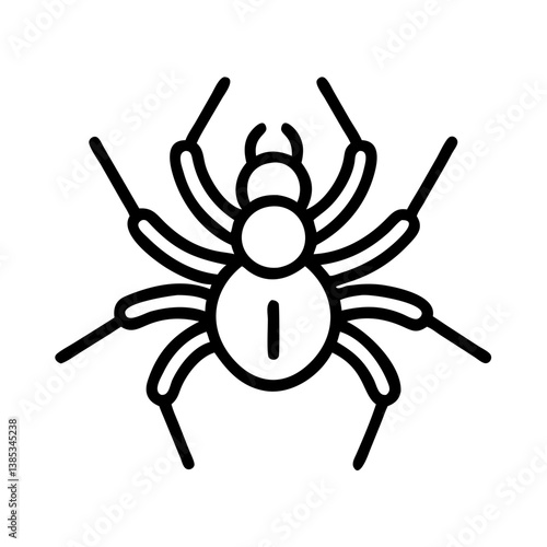 Spider outline vector illustration, arachnid insect with eight legs, halloween spider icon, creepy crawly art