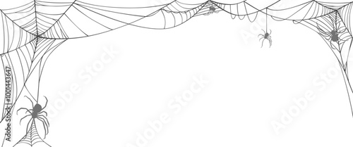 Spider web line art vector. Halloween frame border vector eps