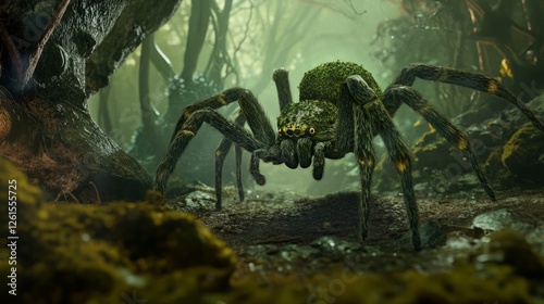 Spider with fungal growth in a forest, symbolizing nature's parasitic control mechanisms.